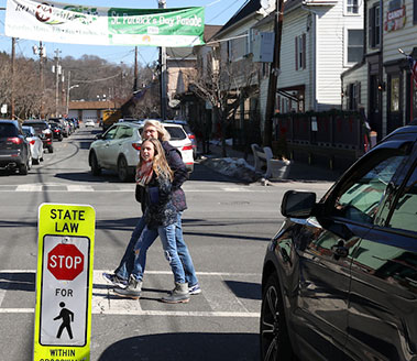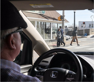 Driver safety tip: Stop for pedestrians in marked crosswalks and yield when turning at intersections. It’s the law.