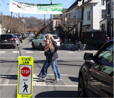 Motorists in New Jersey MUST stop for people in marked crosswalks. Failure to do so could result in 2 points and a $200 fine.