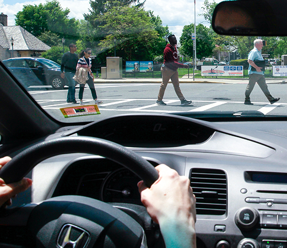 Driver safety tip: Stop for people in marked crosswalks and yield when turning at intersections. It’s the law.